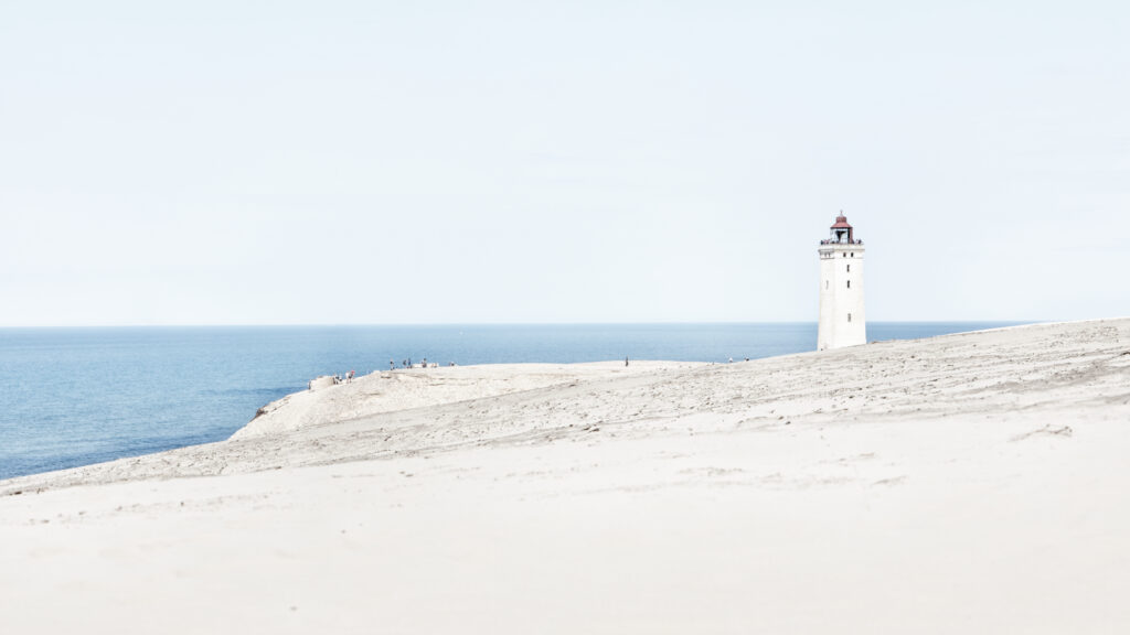 Vinden tager fat i ansigtet, og sandet pisker mod huden som små nålestik. Jeg kniber øjnene sammen mod det skarpe lys og den endeløse horisont. Foran mig rejser Rubjerg Knude Fyr sig, ensomt og majestætisk, et vidne til naturens utrættelige kræfter.