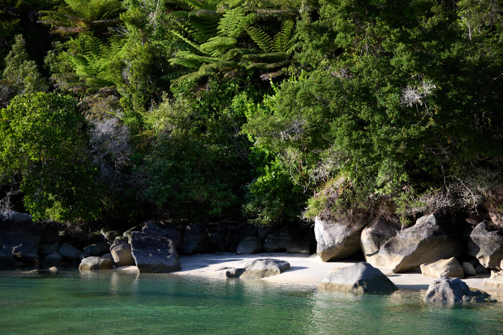 One of the most beautiful places I have ever visited is Bark Bay in Abel Tasman National Park. The bay unfolds with soft, golden sand, crystal-clear turquoise water, and a perfect semicircle of forest-covered hills. The contrast between the dense, green ancient forest and the vivid colours of the sea is both calming and breathtaking — especially in the early morning light or late in the day.